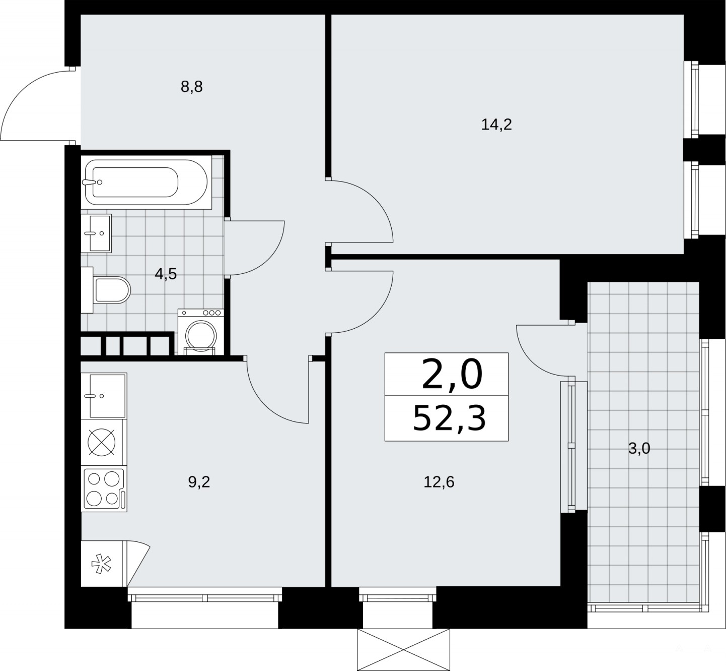 Двухкомнатная квартира в ЖК "Бунинские кварталы" на 9 этаже. Квартира без отделки, новый владелец может сделать ремонт по своему проекту. Общая площадь: 52.3 кв.м., жилая: 26.7 кв.м., площадь просторной кухни-столовой: 9.2 кв.м. Угловая квартира, идеально подойдет любителям тишины и панорамных видов. В квартире одна лоджия, один совмещенный санузел. Высота потолков 3.1 м.