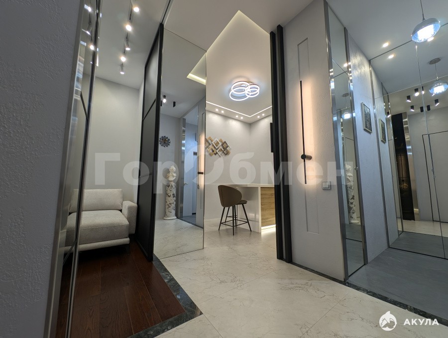 Умный дом с Алисой. Шторы блэкаут с голосовым управлением, Smart-TV, кондиционер, защита от протечки, многоуровневая система очистки воды, акустическая шумоизоляция. Встроенная кухонная бытовая техника. Cтиральная машина. Интерьерный свет с вариантами освещения. Встроенные гардеробные шкафы. Много места для хранения.