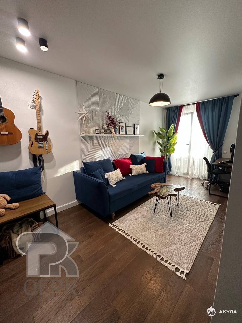 Гостиная также идеально подойдет как комната для подростка, так и для малыша. 2 книжных стеллажа, рабочий стол и сидушка под гитарами в гостиной из натурального дерева, ручная работа куплены в фирме Мунзана ( стоимость порядка 400к), люстра Skygarden, любимый чайно-кофейный столик из карагача с эпоксидный смолой от woodencat, диван новый легко раскладывается в 2-х спальную кровать.
