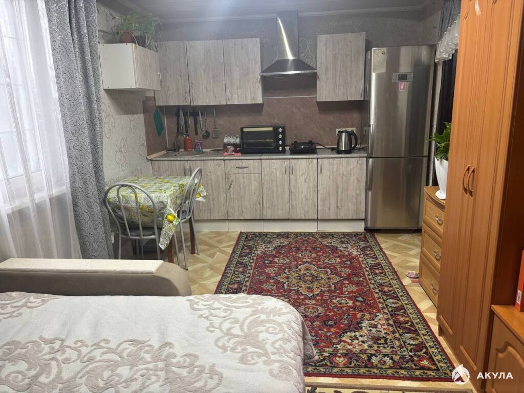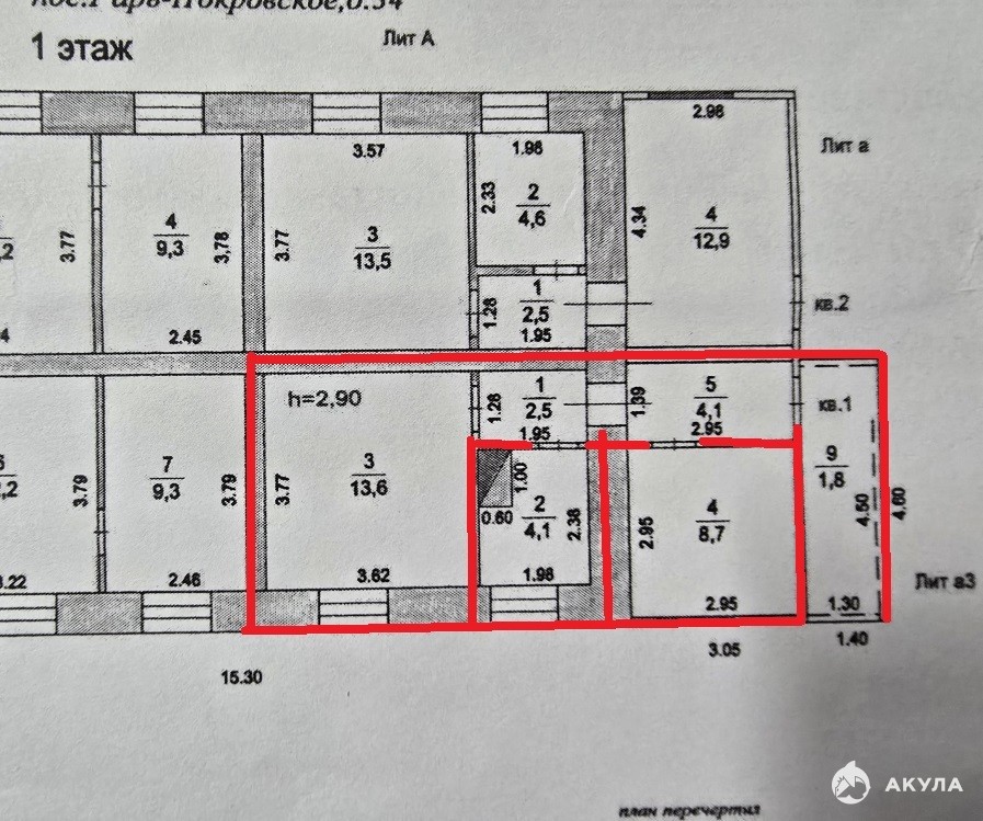Квартира на 1 этаже, 1-ти этажного кирпичного дома, фасад oбшит сaйдингoм. Общая площадь по документам: 20, 2 кв.м. (по факту 45 кв.м.), кухня-гостинная: 18 (пристроена) кв.м., комната: 13, 6 и кухня 4, 1 кв.м (изолированная) с печью, окна везде пластиковые. Вода - централизованная. Туалет на улице. Отопление-печное. Газ подведен к забору участка.
