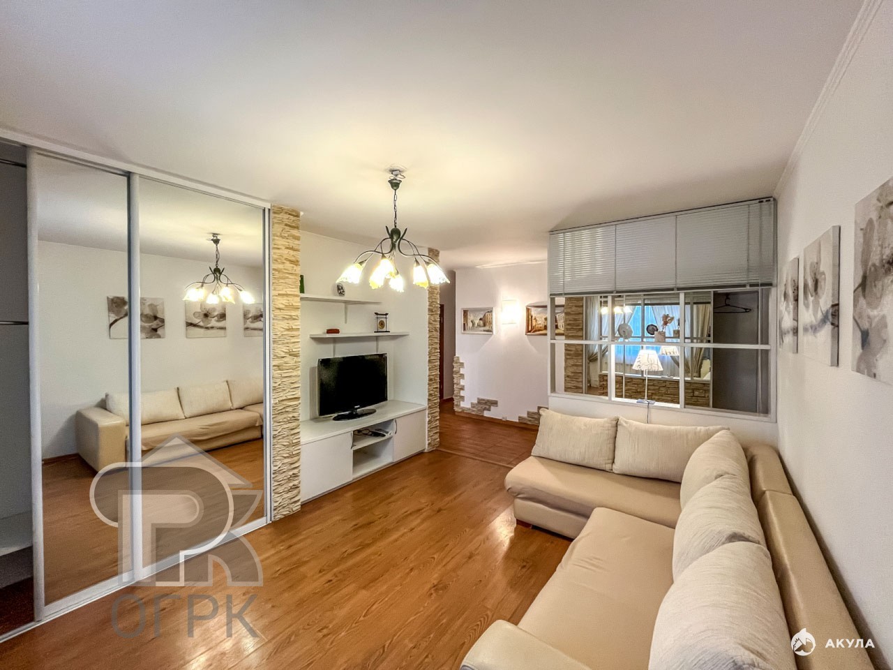 Полы с подогревом на кухне и в коридоре. Ламинат + плитка. Кондиционер. Зеркальные встроенные шкафы добавляют света и делают квартиру визуально еще просторнее. Застекленная лоджия. В раздельном санузле установлена стиральная машина.