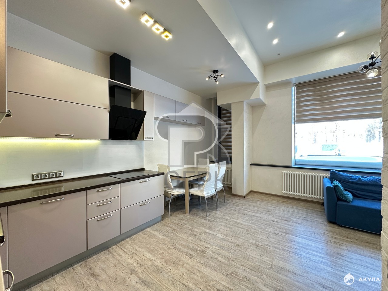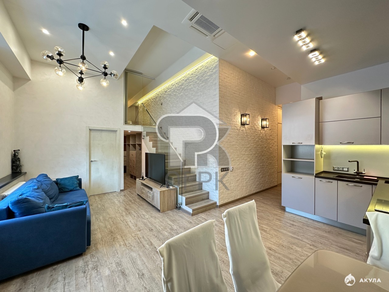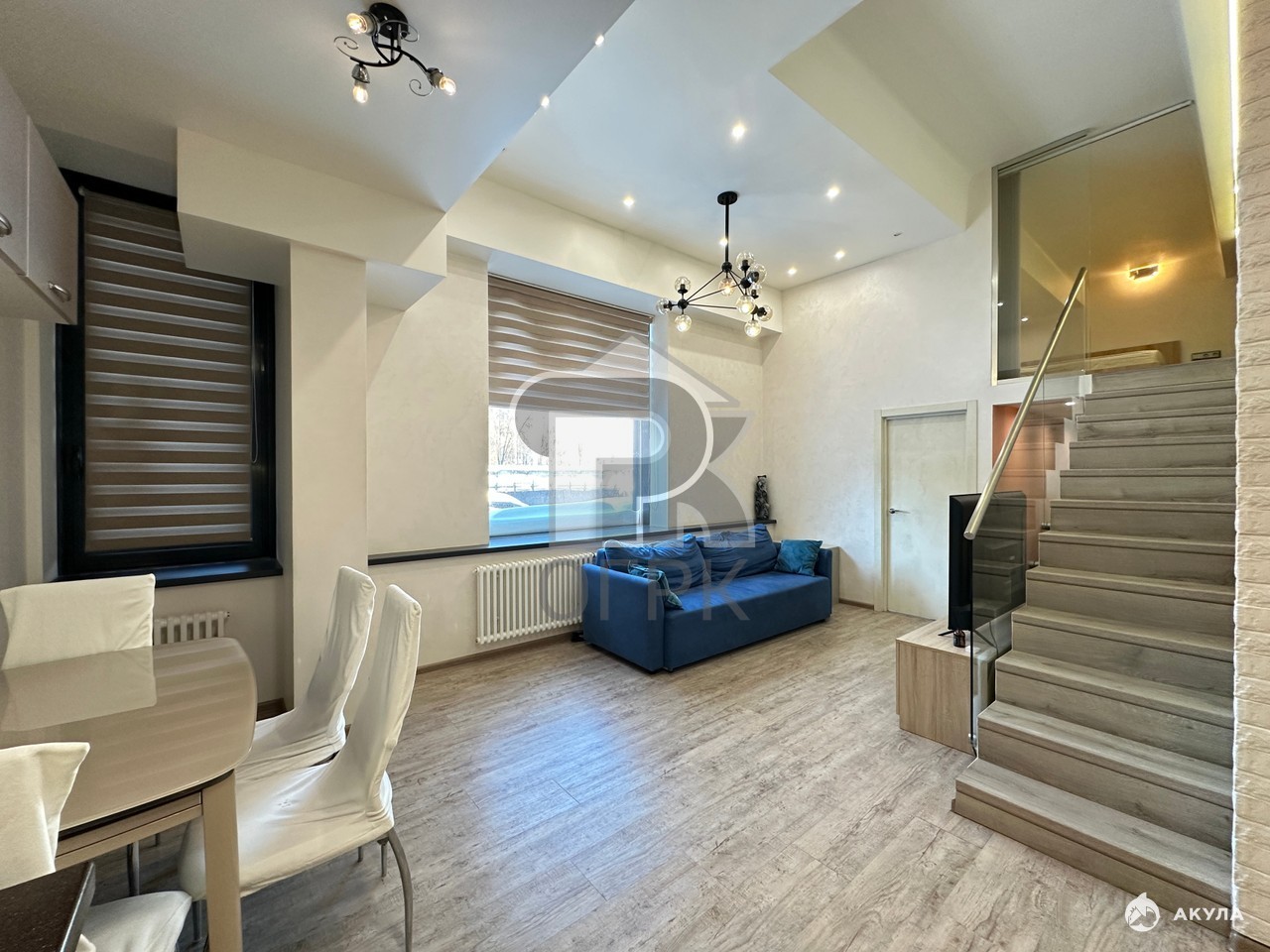 Для хранения предусмотрена отдельная гардеробная комната над антресолью, а для верхней одежды есть полноценный шкаф в прихожей. С/у большой совместный. Внутри апартамент очень светлый за счет широкоформатных окон.