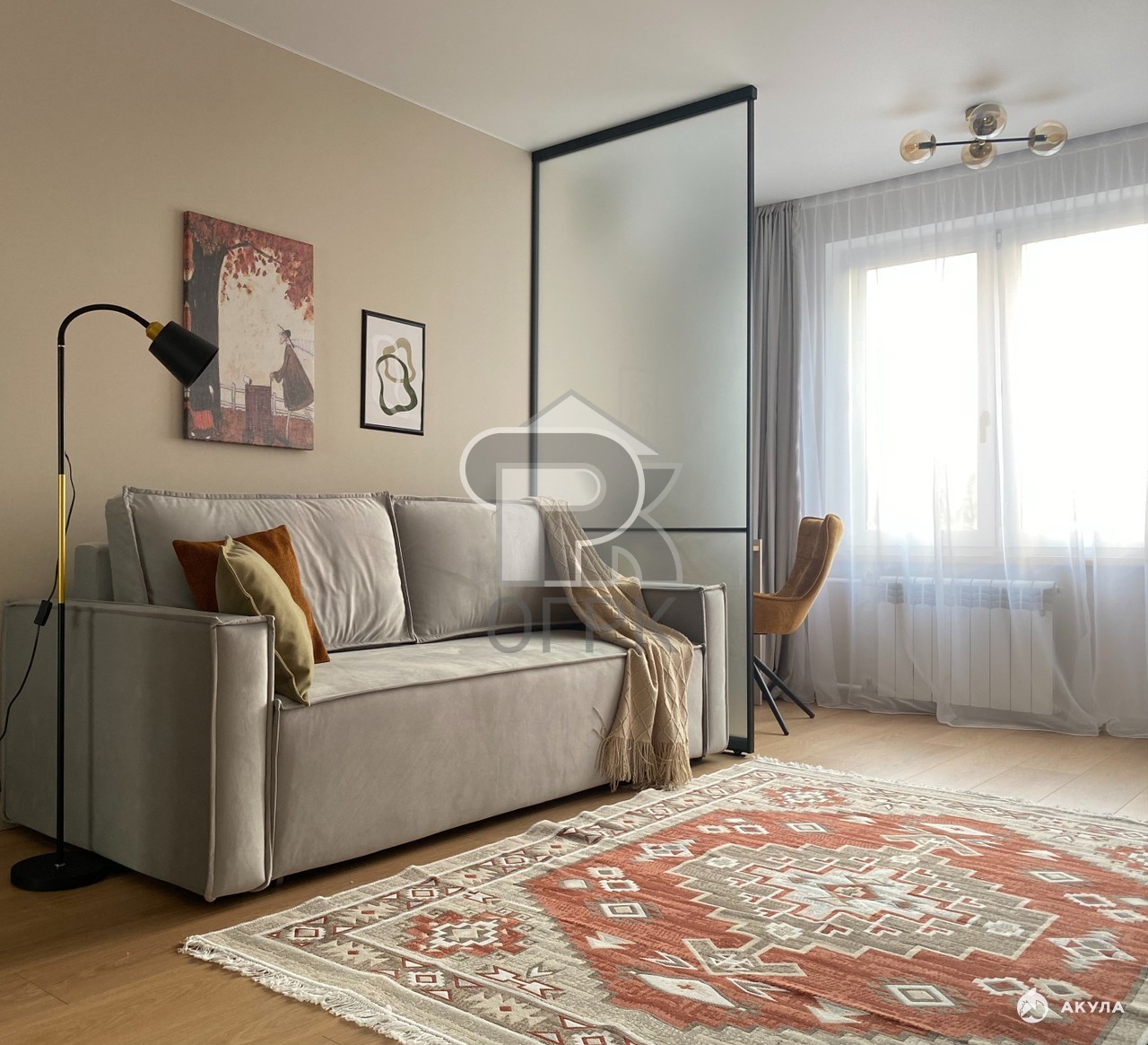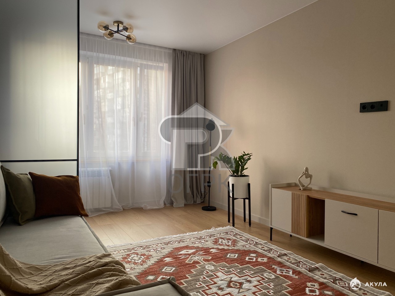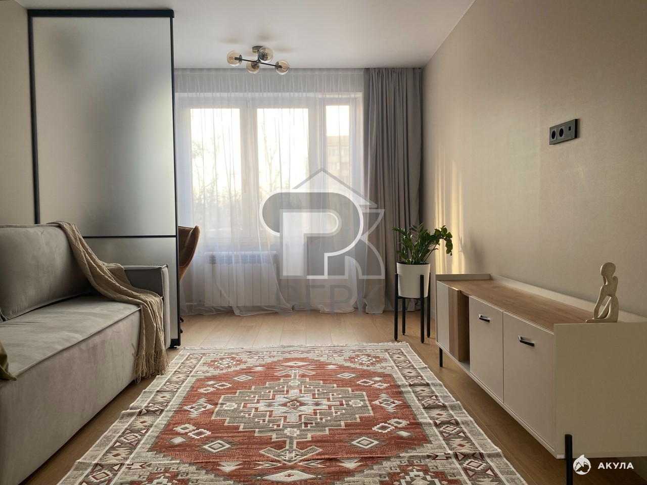 Планировка квартиры отличается рациональностью: две изолированные комнаты площадью 9, 1 и 18, 6 кв. м, что позволяет гибко зонировать пространство. Просторная гостиная легко может стать мастер-спальней или местом для семейного отдыха. Отдельная кухня в 6 кв. м оснащена всей необходимой мебелью и техникой. В квартире также установлен кондиционер, обеспечивающий комфортный микроклимат в любое время года. Санузел совмещенный, отделан в соответствии с общим стилем ремонта.