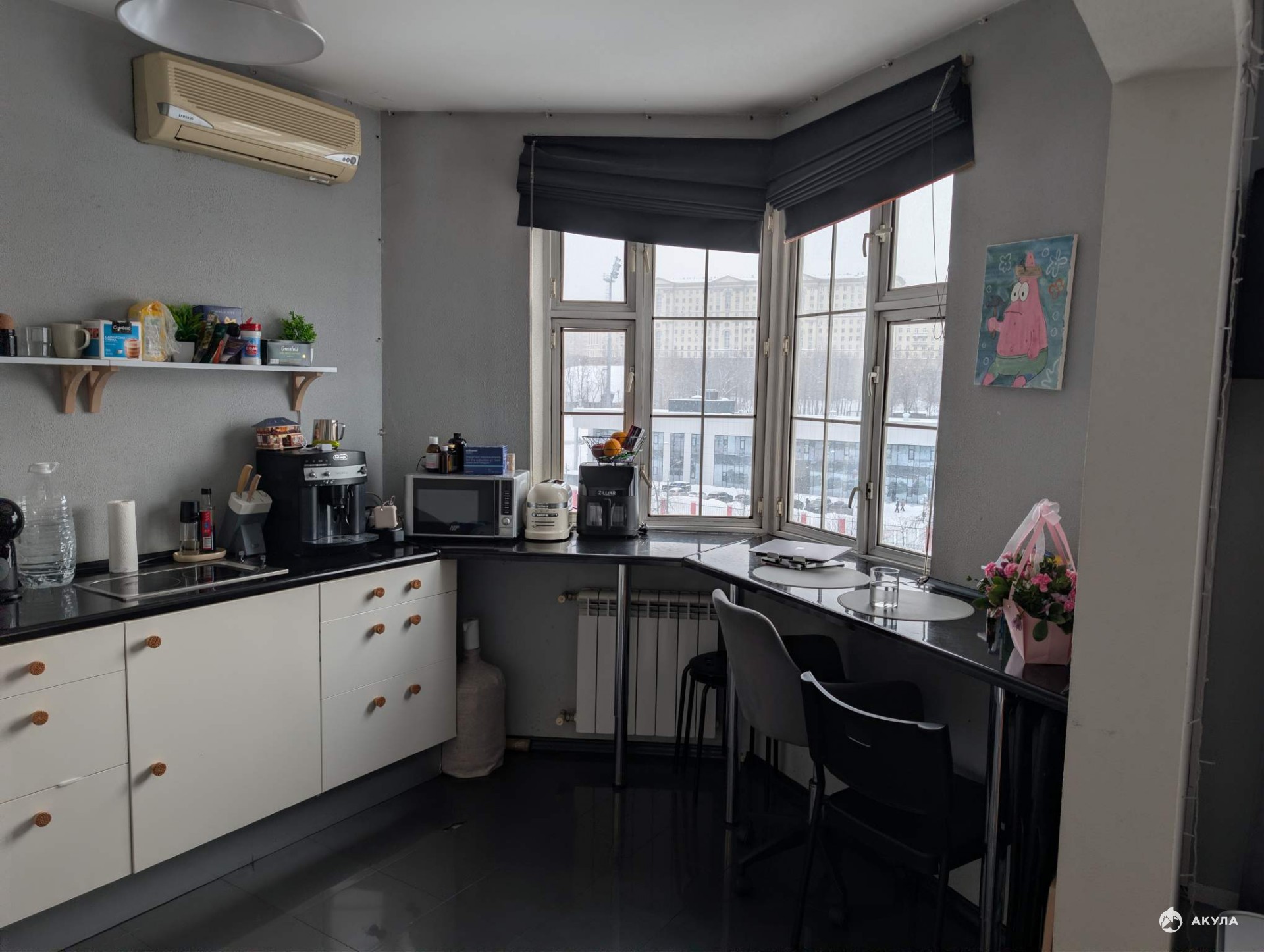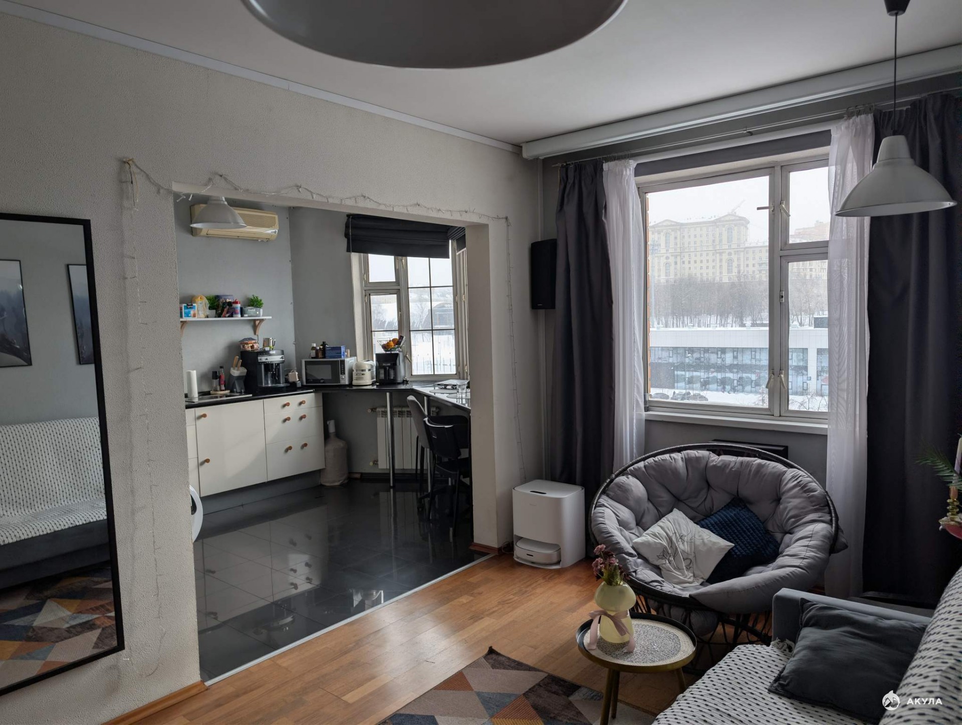 Главная особенность — современная планировка с объединенной кухней-гостиной и панорамным видом на Рубцовскую набережную. Прямо у окна организовано эргономичное рабочее место, позволяющее работать с видом на гладь реки. Перепланировка узаконена не была. Возможно, кому-то предпочтительно будет вернуть стандартную планировку с изолированными комнатами. Дом серии П-44Т 2002 года постройки расположен в престижном ЦАО. Это качественное жилье с консьержем и чистыми подъездами расположенное недалеко от метро «Электрозаводская» и «Бауманская».