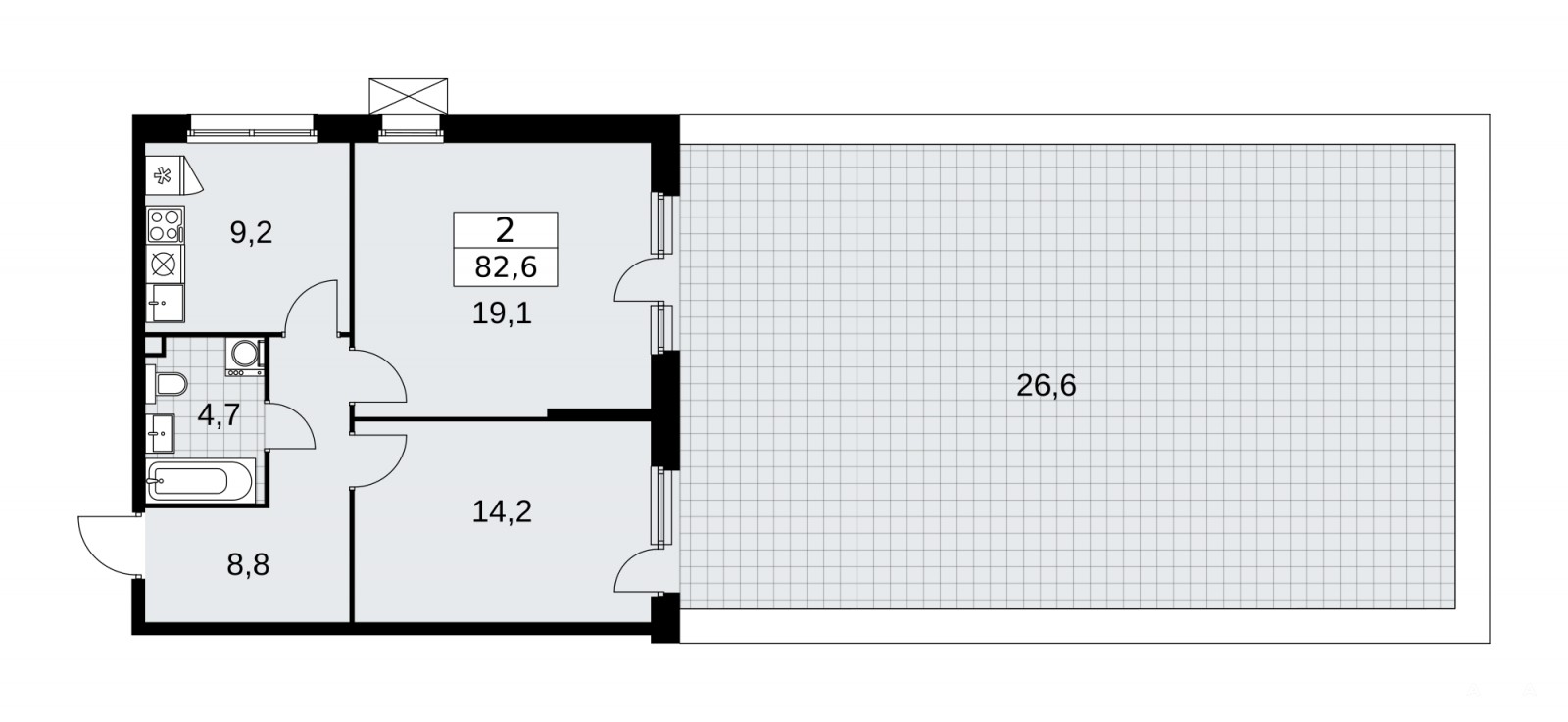 Продается 2-комн. квартира от застройщика с отделкой в ЖК "Скандинавия" на 2 этаже. Общая площадь: 82.6 кв.м., жилая: 33.3 кв.м., площадь просторной кухни-столовой: 9.2 кв.м. Угловая квартира, идеально подойдет любителям тишины и панорамных видов. В квартире один балкон, один совмещенный санузел. Наличие в квартире террасы размером 26.6 кв.м. дает возможность для создания зон отдыха в кругу семьи и друзей. Высота потолков 3.1 м.