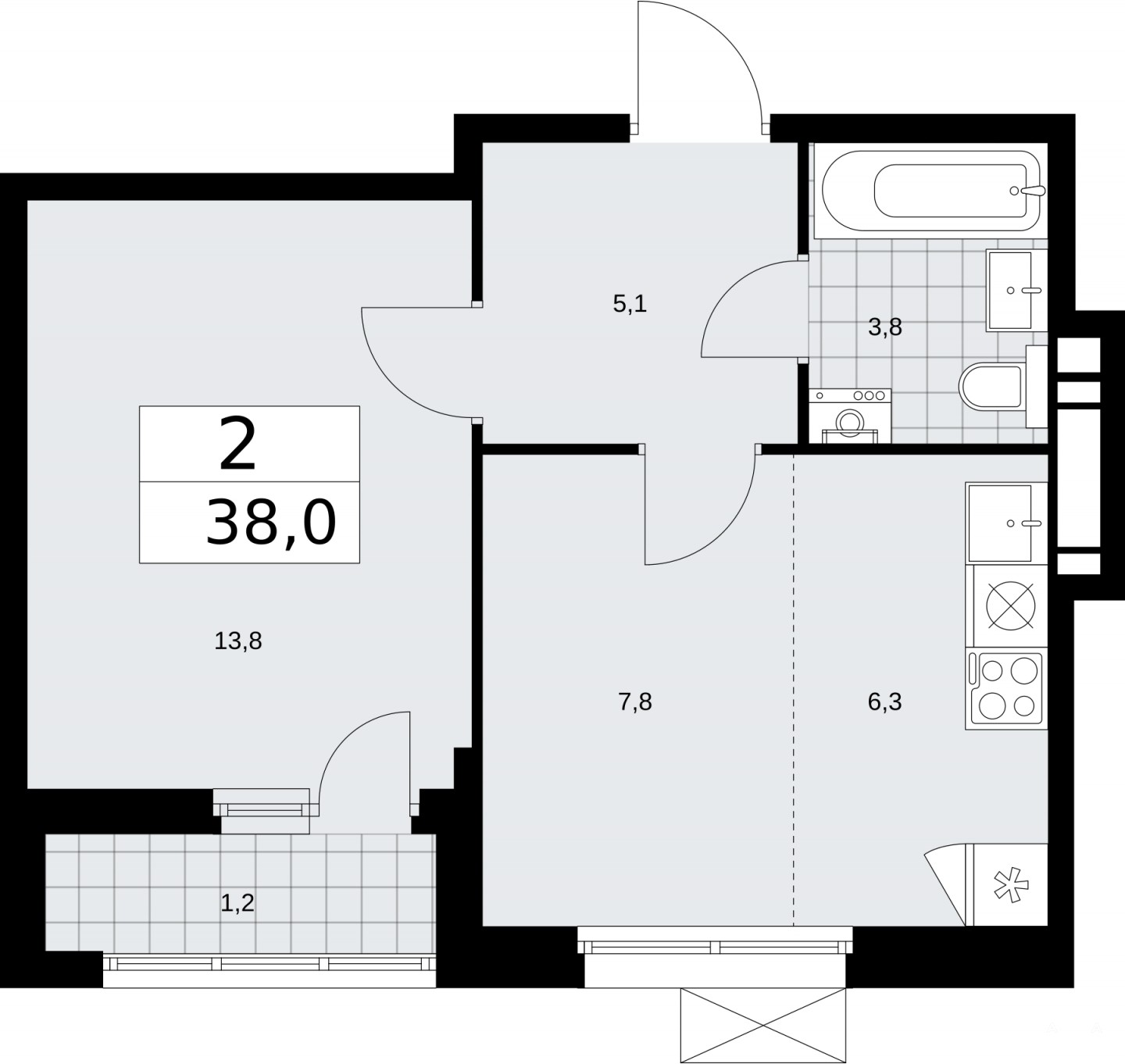 - 38 м²