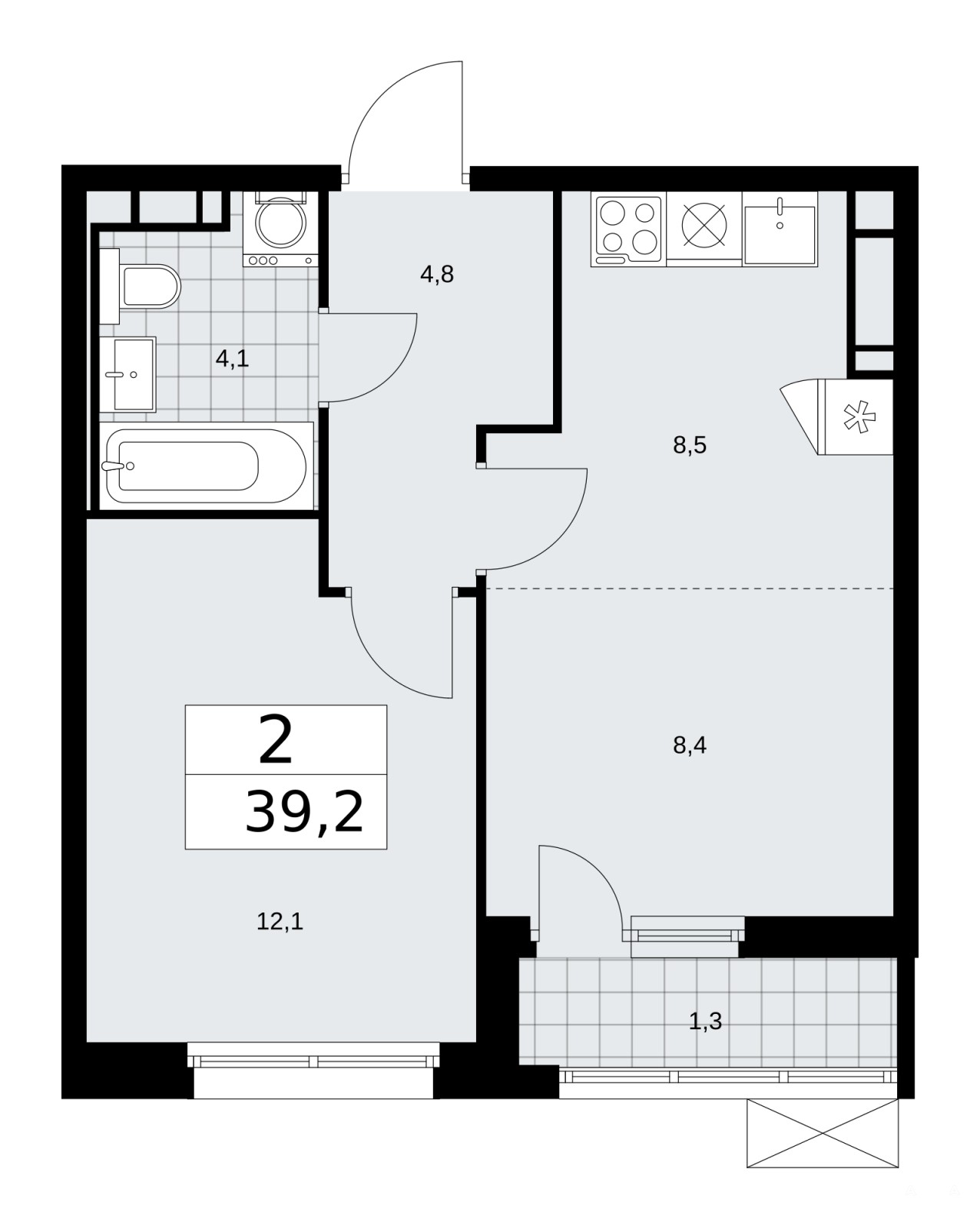 Продается 2-комн. квартира с европланировкой от застройщика в ЖК "Скандинавия" на 13 этаже. Квартира без отделки, полностью готова к чистовой отделке и дальнейшему ремонту. Общая площадь: 39.2 кв.м., жилая: 20.5 кв.м., общая площадь гостиной-столовой с кухонной зоной: 16.9 кв.м. Европейская планировка, зона гостиной комнаты объединена с кухней. Комнаты изолированные, все окна выходят на одну сторону. В квартире одна лоджия, один совмещенный санузел. Высота потолков 3.1 м.