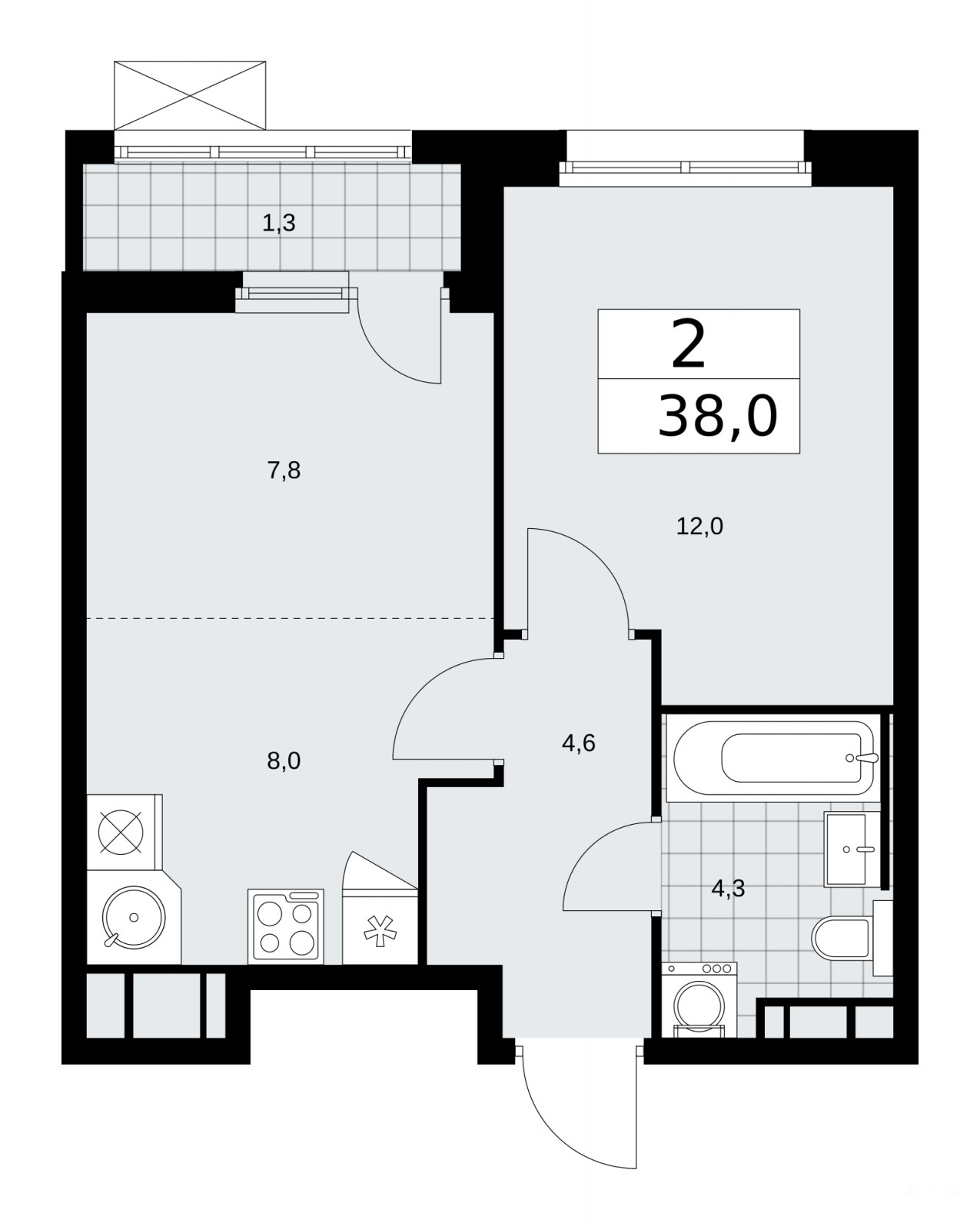 Просторная 2-комн. квартира с европланировкой в ЖК "Скандинавия" на 13 этаже. Квартира без отделки, полностью готова к чистовой отделке и дальнейшему ремонту. Общая площадь: 38 кв.м., жилая: 19.8 кв.м., суммарная площадь гостиной-столовой с кухонной зоной: 15.8 кв.м. Европейская планировка, кухня-гостиная - идеальный вариант для тех, кто любит часто принимать гостей. Комнаты изолированные, все окна выходят на одну сторону. В квартире одна лоджия, один совмещенный санузел. Высота потолков 3.1 м.