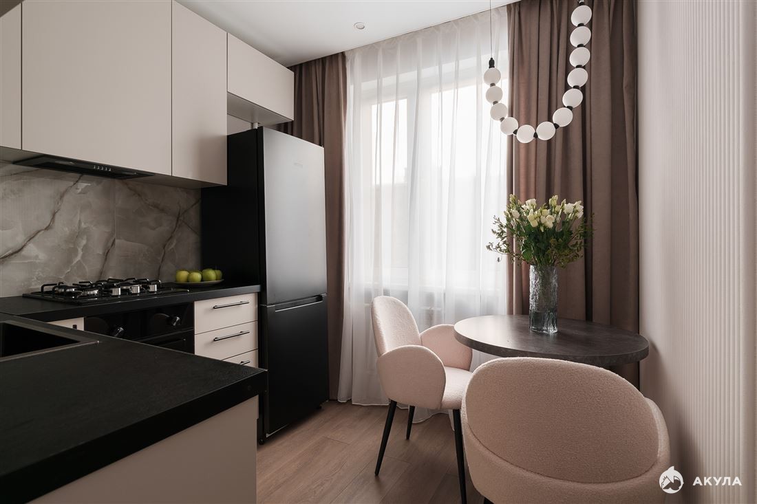 Элегантный и утонченный дизайн создает комфортную расслабленную атмосферу в каждом уголке квартиры. В интерьере использованы гармоничные пастельные оттенки в сочетании с лаконичными формами, современными фактурами и материалами.