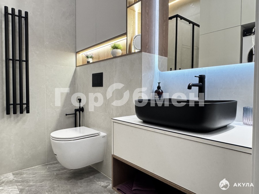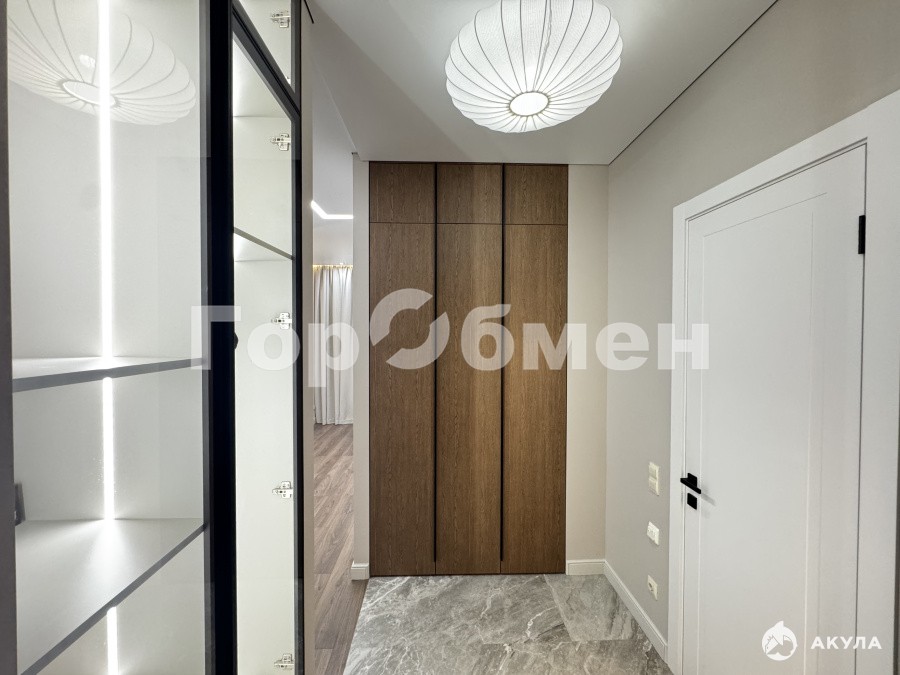 Планировка предусматривает изолированную спальню с вместительным, просторную гостиную с кухней-нишей, зоной отдыха и обеденной группой, совмещенный санузел с душевой системой и тропическим душем, гигиенический душ, а также стирально-сушильный блок. В прихожей и с/у много мест для хранения одежды и хозяйственных принадлежностей. Предусмотрена розетка для робота-пылесоса, заложена система анти-протечки и водо-нагрева.