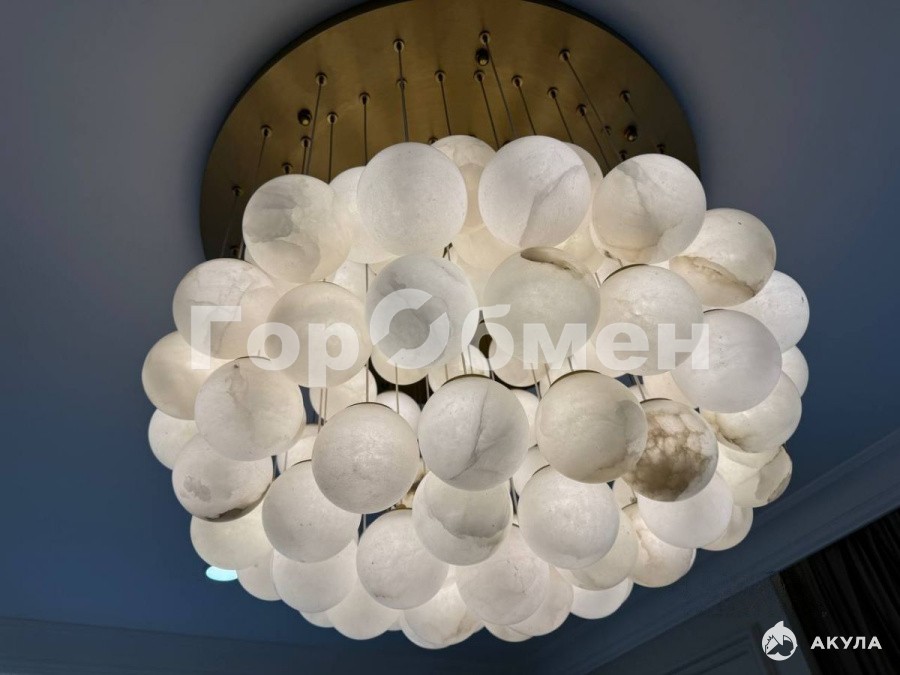 - Вся мебель и свет для этой квартиры, приобреталась, изготавливалась и везлась под заказ. Люстра из НАТУРАЛЬНОГО мрамора 93 мраморных шара, в живую выглядит потрясающе.
