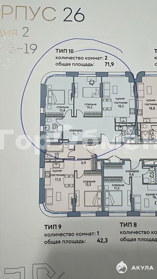 Продается роскошная 2-комнатная квартира 72 м² в ЖК «Символ»! Панорамный вид, 8/25 этаж. Цена 33, 4 млн.