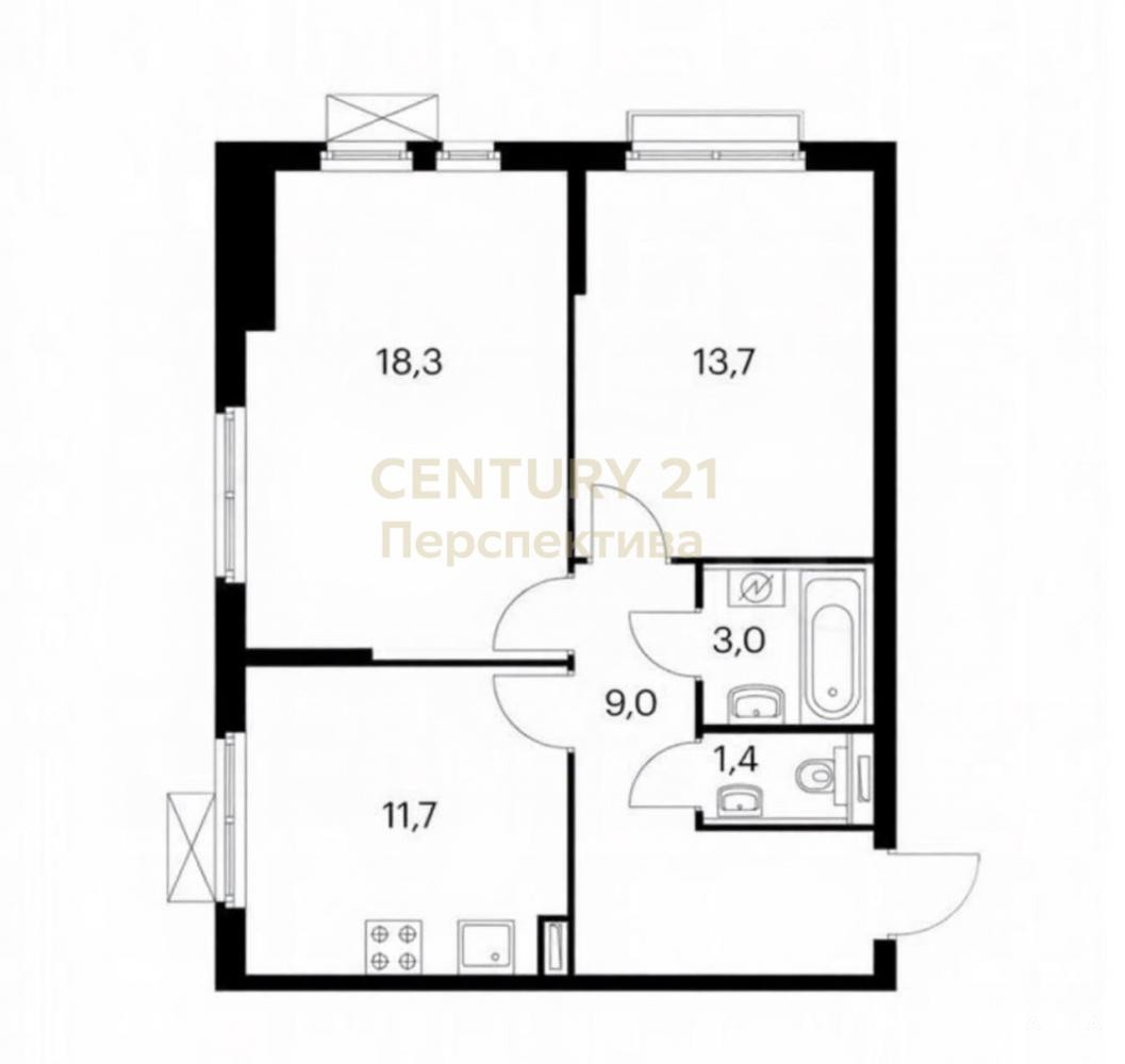 - 2 изолированные комнаты: Просторная гостиная 18, 3кв м. Спальная комната 13, 7кв м.