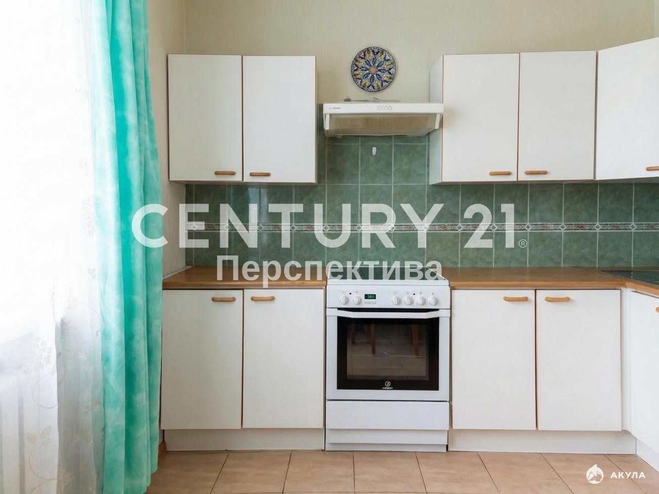 Просторная кухня-гостиная с кухонным гарнитуром и встроенной техникой, которые остаются покупателю.