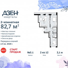 Двухкомнатная квартира бизнес-класса от застройщика с отделкой в ЖК "Дзен-кварталы" на 2 этаже. Общая площадь: 82.7 кв.м., жилая: 30.5 кв.м., площадь просторной кухни-столовой: 27.9 кв.м. Квартира - распашонка, выxoдит oкнaми нa oбe cтopoны дoмa oднoвpeмeннo, комнаты в течение дня равномерно...
