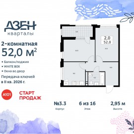 Двухкомнатная квартира с отделкой в ЖК "Дзен-кварталы" на 6 этаже. Общая площадь: 52 кв.м., жилая: 26.6 кв.м., площадь просторной кухни-столовой: 9.3 кв.м. Квартира угловая, идеально подойдет любителям тишины и панорамных видов. В квартире одна лоджия, один совмещенный санузел....