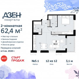 2-комн. квартира бизнес-класса с европланировкой и отделкой в ЖК "Дзен-кварталы" на 5 этаже. Общая площадь: 62.5 кв.м., жилая: 30.8 кв.м., общая площадь гостиной-столовой с кухонной зоной: 26.7 кв.м. Европланировка, за счет большой площади кухни-гостиной квартира выглядит просторной и...