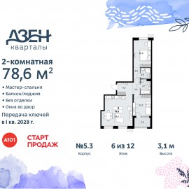 2-комн. квартира бизнес-класса в ЖК "Дзен-кварталы" на 3 этаже. Квартира без отделки, новый собственник может сделать ремонт по своему дизайн-проекту. Общая площадь: 78.6 кв.м., жилая: 27.2 кв.м., площадь просторной кухни-столовой: 28.6 кв.м. Квартира - распашонка, очень светлая, без...