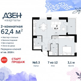 Продается 2-комн. квартира бизнес-класса с европланировкой в ЖК "Дзен-кварталы" на 7 этаже. Квартира без отделки, после оформления собственности можно делать ремонт. Общая площадь: 62.4 кв.м., жилая: 30.8 кв.м., суммарная площадь гостиной-столовой с кухонной зоной: 26.7 кв.м....