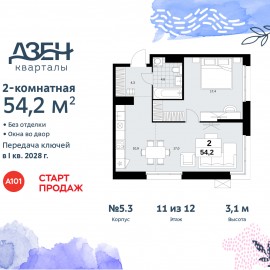 2-комн. квартира бизнес-класса с европланировкой от застройщика в ЖК "Дзен-кварталы" на 11 этаже. Квартира без отделки, новый владелец может сделать ремонт по индивидуальному дизайн-проекту. Общая площадь: 54.2 кв.м., жилая: 31.8 кв.м., суммарная площадь гостиной-столовой с...