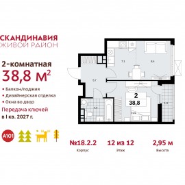 Двухкомнатная квартира с европланировкой и отделкой в ЖК "Скандинавия" на 12 этаже. Общая площадь: 38.8 кв.м., жилая: 20.3 кв.м., суммарная площадь гостиной-столовой с кухонной зоной: 15.5 кв.м. Европейская планировка, кухня-гостиная - идеальный вариант для тех, кто любит часто...