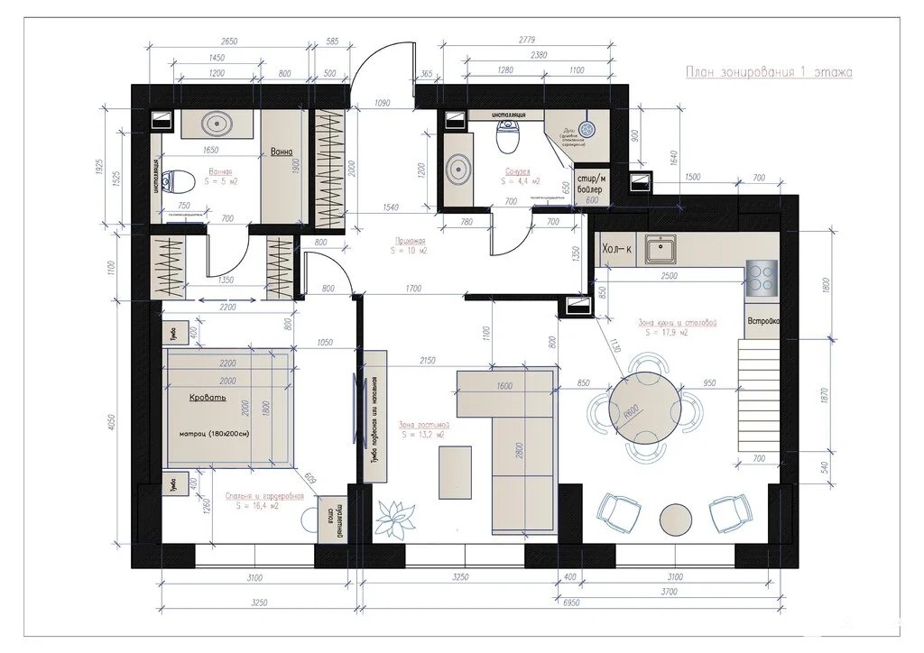 - планировка: мастер – спальня с гардеробной и санузлом, детская/кабинет, кухня-гостиная с обеденной зоной, совмещенный санузел, просторный коридор;