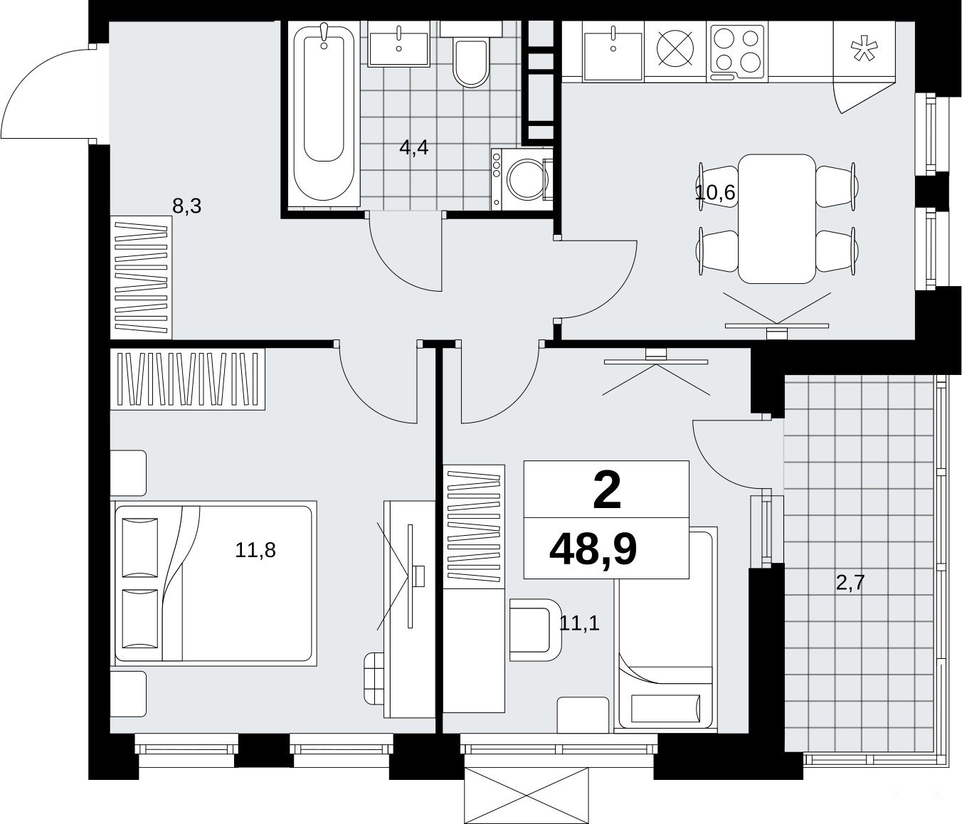 Квартира находится в корпусе 2.18.2.3. Дом монолитный, одноподъездный, высотой 18 этажей. На этаже 8 квартир. В подъезде 1 пассажирский и 1 грузовой лифт. Начало строительства - 1 квартал 2024 года. Окончание строительства - 1 квартал 2027 года. Оформление сделки по договору долевого участия.
