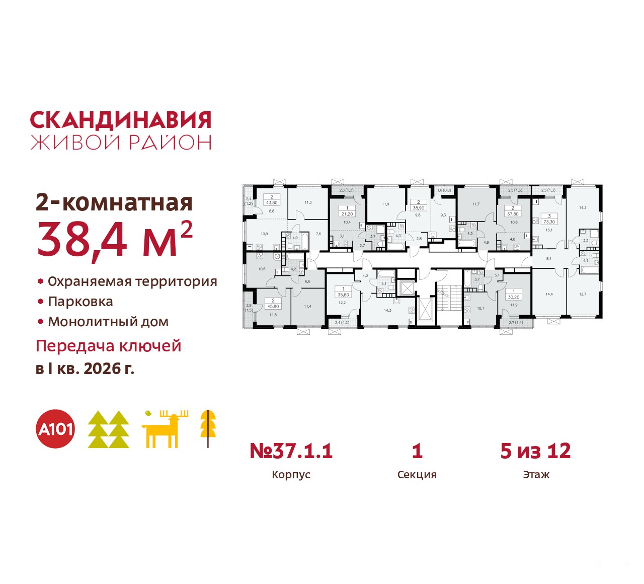 Квартира находится в корпусе 37.1.1. Дом монолитный, одноподъездный, высотой 12 этажей. На этаже 8 квартир. В подъезде 1 пассажирский и 1 грузовой лифт. Начало строительства - 2 квартал 2023 года. Окончание строительства - 1 квартал 2026 года. Оформление сделки по договору долевого участия.