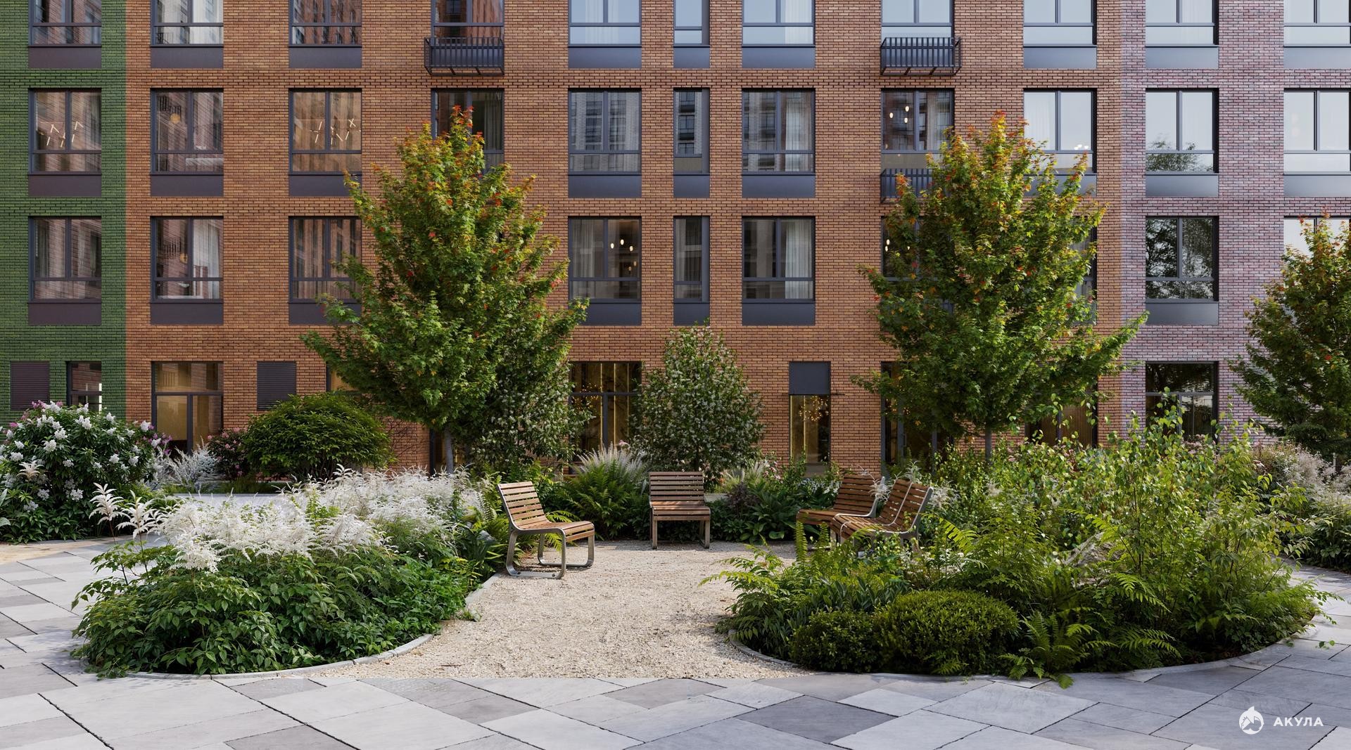6. Европейская архитектура с фасадами природных оттенков: песочного, серого, зеленого, терракотового