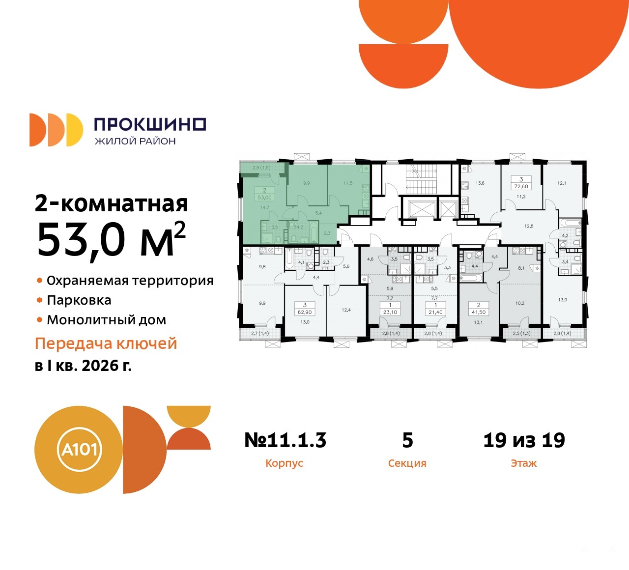 Квартира находится в корпусе 11.1.3. Дом монолитный, одноподъездный, высотой 19 этажей. На этаже 6 квартир. В подъезде 1 пассажирский и 1 грузовой лифт. Начало строительства - 1 квартал 2023 года. Окончание строительства - 1 квартал 2026 года. Оформление сделки по договору долевого участия.