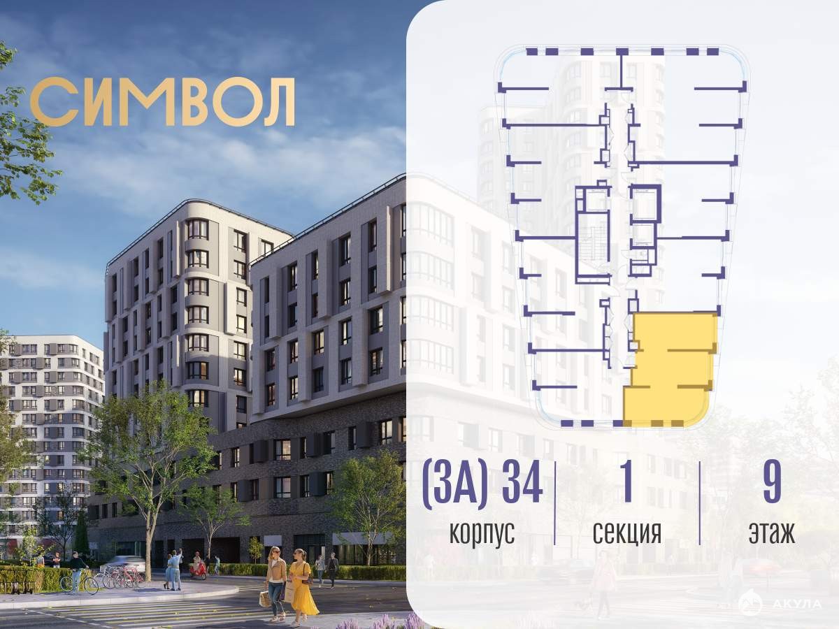 Продается 2-комнатная квартира от застройщика: общая площадь 65.00 м, жилая 24.60 м, кухня 21.40 м, 9-й этаж, жилой квартал «Вдохновение», корпус 34 (секция 1) . Срок сдачи: 4 квартал 2027 года.