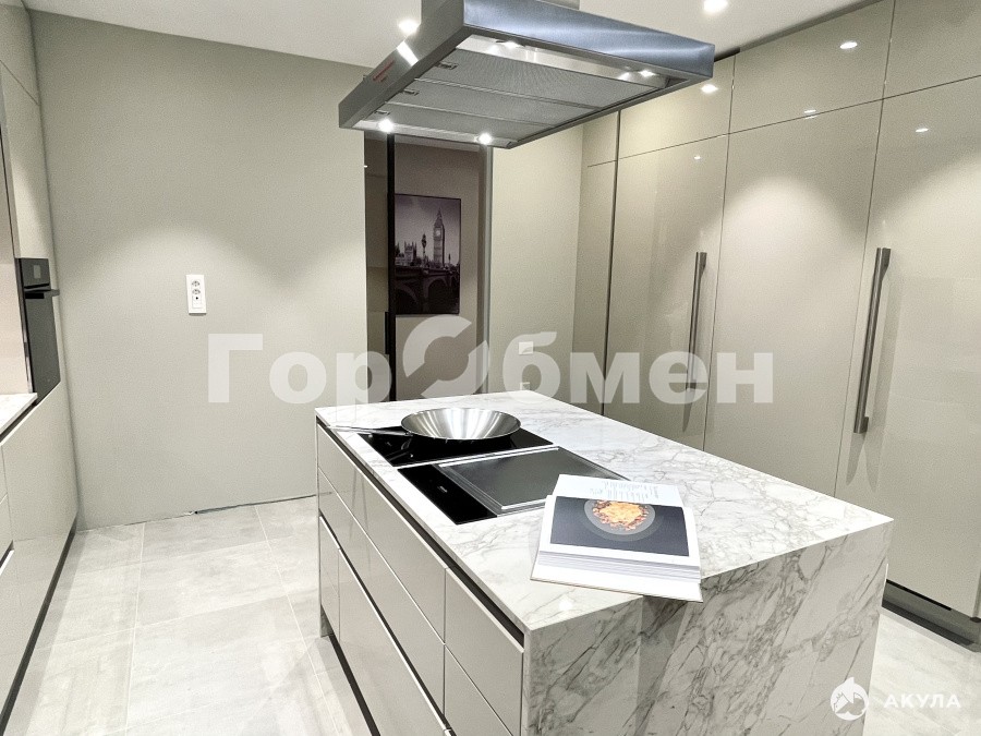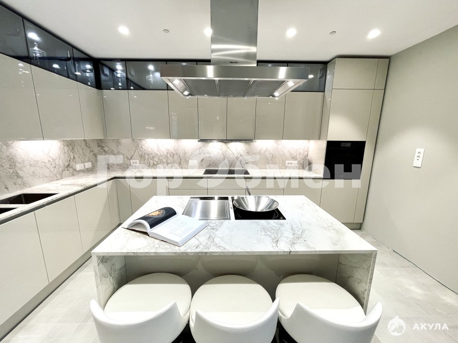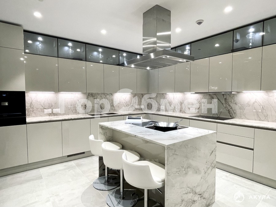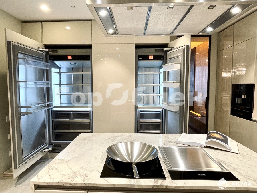 Функциональная изолированная кухня оборудованная дорогостоящей техникой, созданная для профессионального кулинарного опыта : профессиональные шеф-духовки , плита тапан-яки, высокотехнологичная кофе машина бариста, для безупречного наслаждения качественным кофе. Площадь кухни - 20, 8 кв м,
