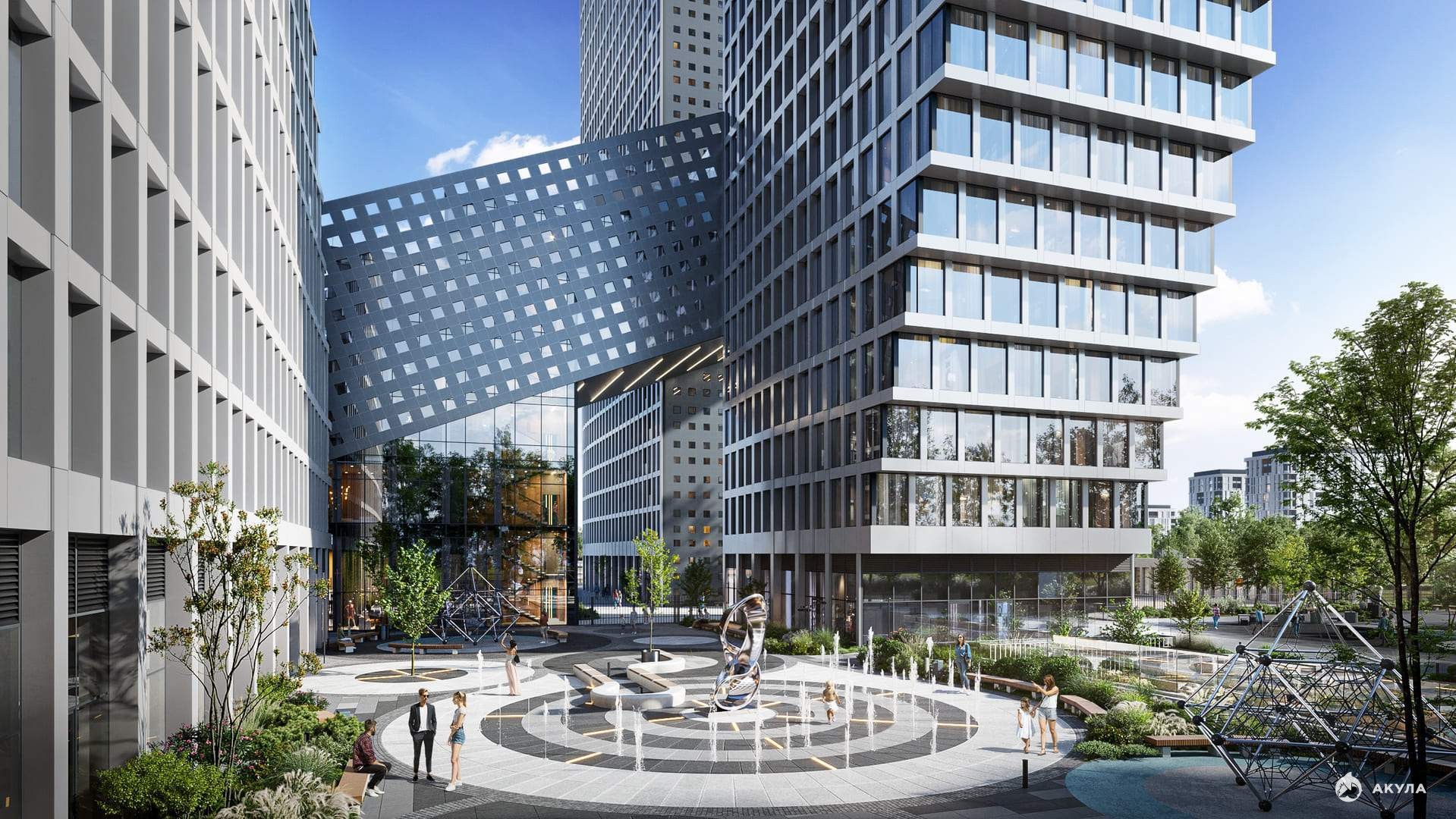 В составе комплекса - собственный СПА-центр с открытым всесезонным бассейном, офисный центр с конференц-залом и амфитеатром, коворкинг, двухуровневый подземный паркинг, кафе и ресторан, аптеки и супермаркет, а также приватные пространства для резидентов: досуг, красота и здоровье, частные и детские мероприятия. Дополняют концепцию авторское благоустройство, прогулочные зоны, фонтан, скульптуры.