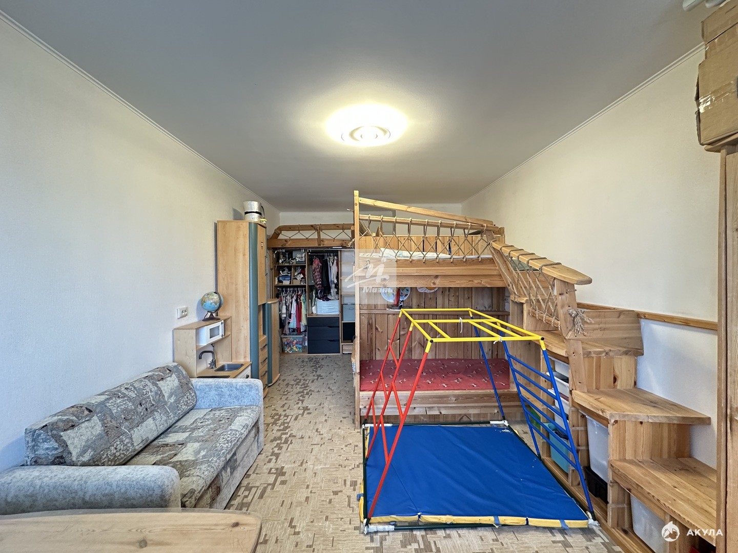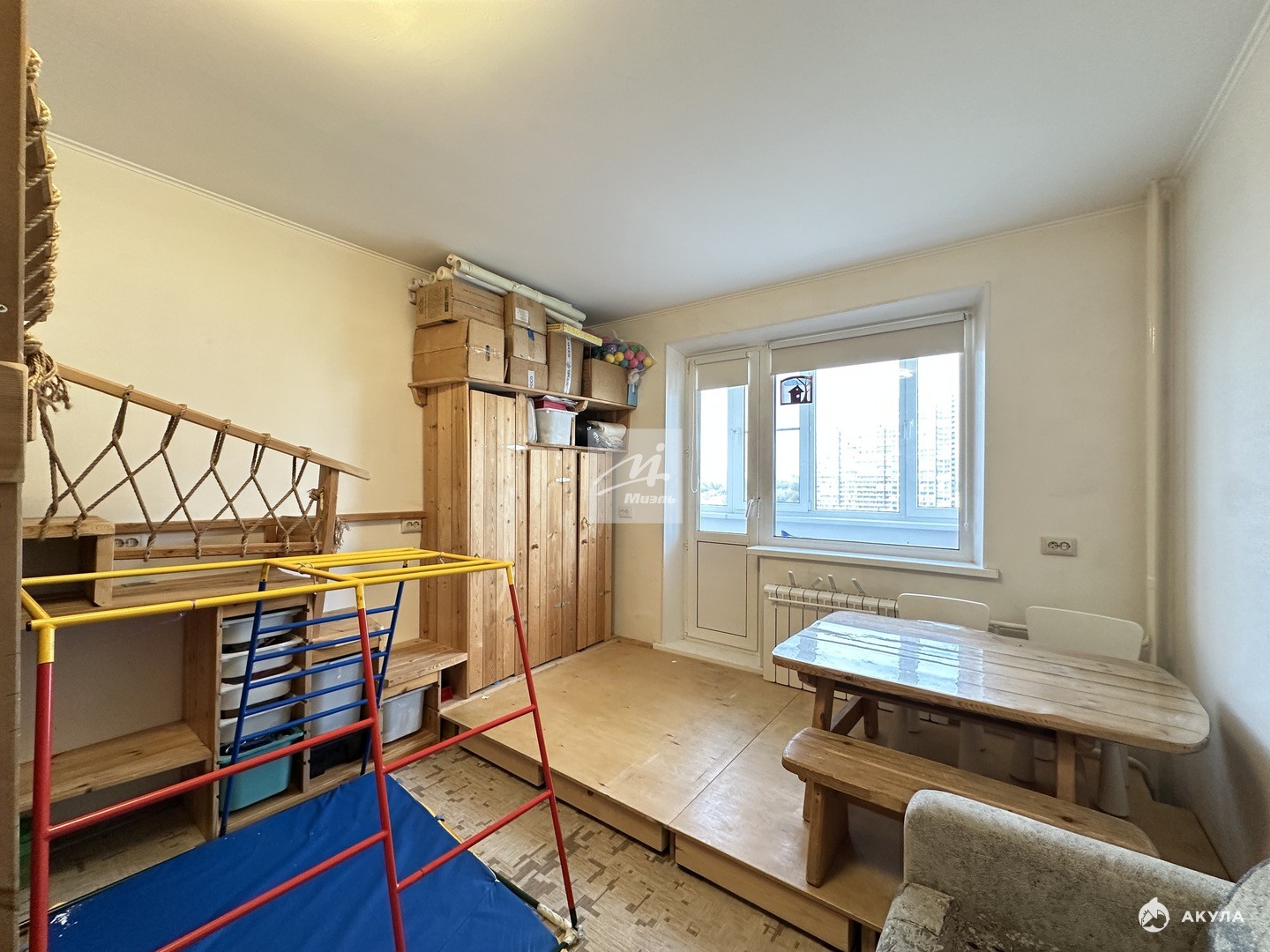 Одна большая проходная комната — прекрасно подойдёт как гостиная, игровая или кабинет