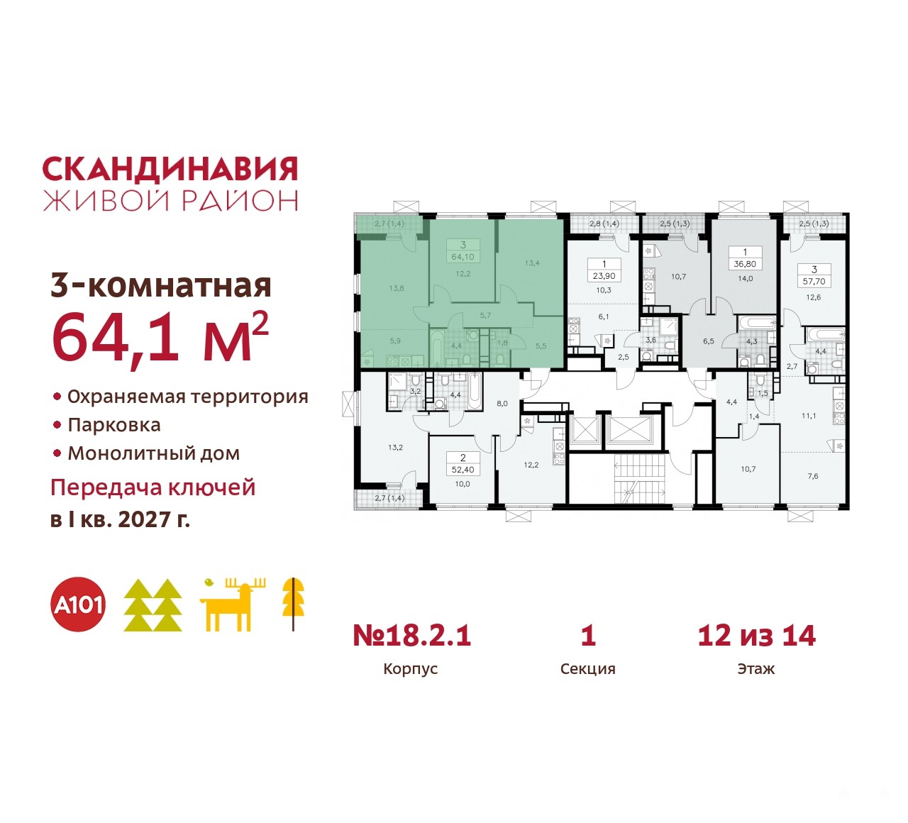 Артикул квартиры по базе застройщика 23К-18.2.1-52.