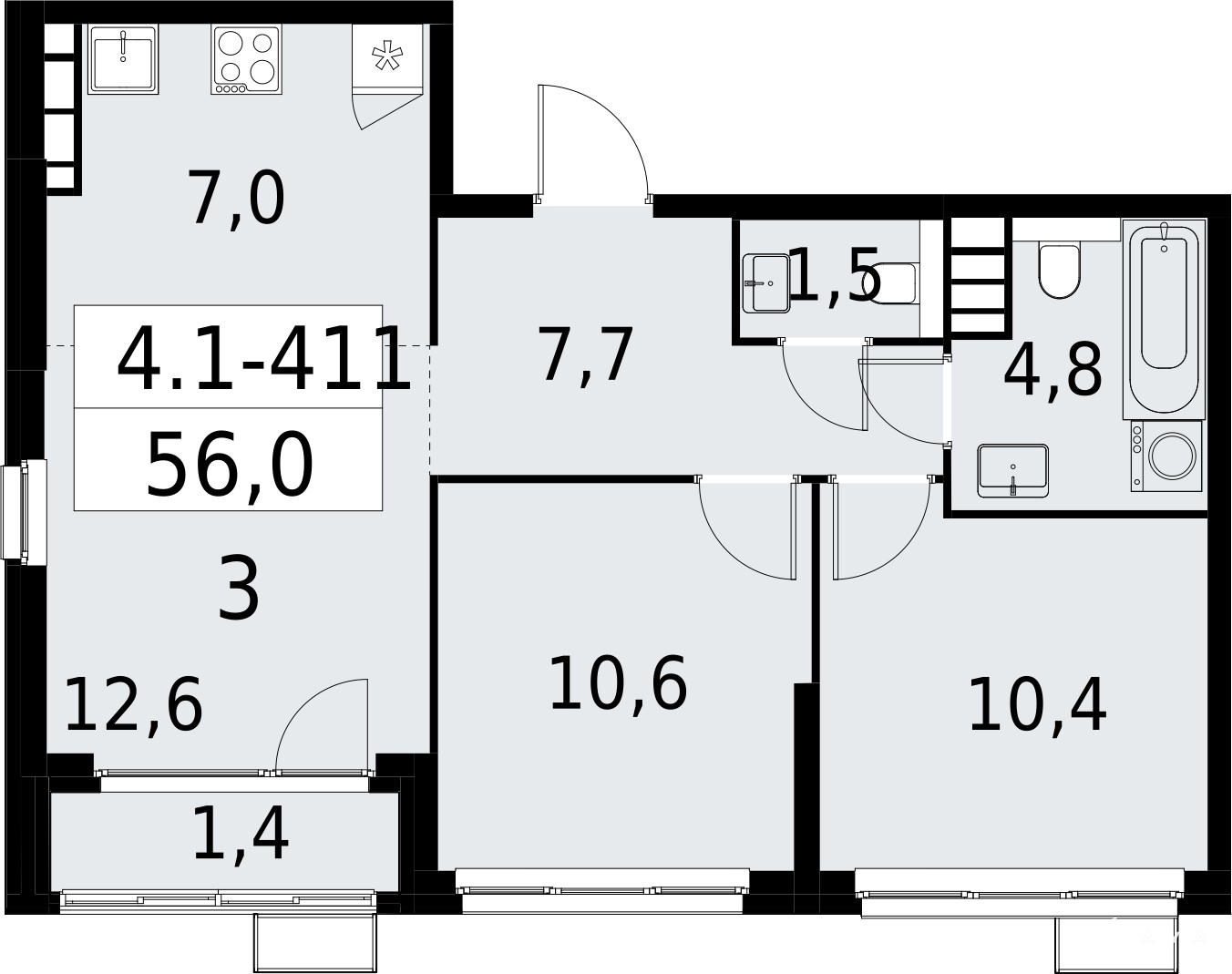 - 56 м²