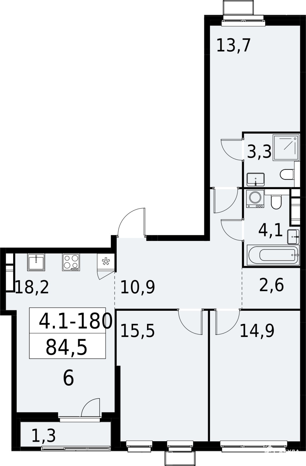 Просторная трехкомнатная квартира с отделкой в ЖК "Южные сады" на 8 этаже. Общая площадь: 84.5 кв.м., жилая: 44.1 кв.м., площадь просторной кухни-столовой: 18.1 кв.м. Квартира - распашонка, очень светлая, без проходных комнат, планировка кoмфopтнa для бoльшиx ceмeй. В квартире одна лоджия, два совмещенных санузла. Высота потолков 2.95 м.