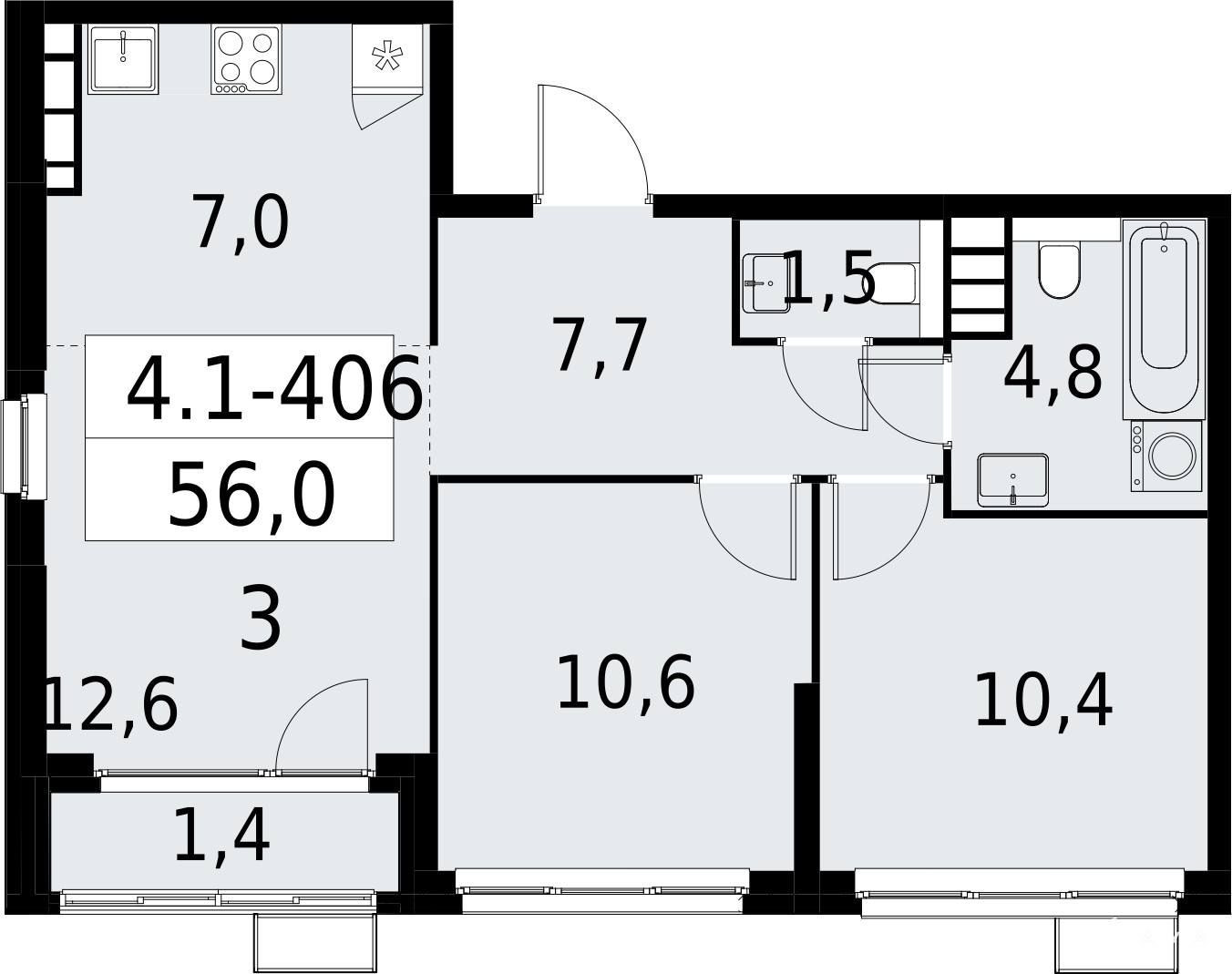 Просторная трехкомнатная квартира с европланировкой и отделкой в ЖК "Южные сады" на 29 этаже. Общая площадь: 56 кв.м., жилая: 33.4 кв.м., суммарная площадь гостиной-столовой с кухонной зоной: 19.7 кв.м. Европланировка, кухня-гостиная - идеальный вариант для тех, кто любит часто принимать гостей. Комнаты изолированные, все окна выходят на одну сторону. В квартире одна лоджия, один совмещенный и один раздельный санузел. Высота потолков 2.95 м.