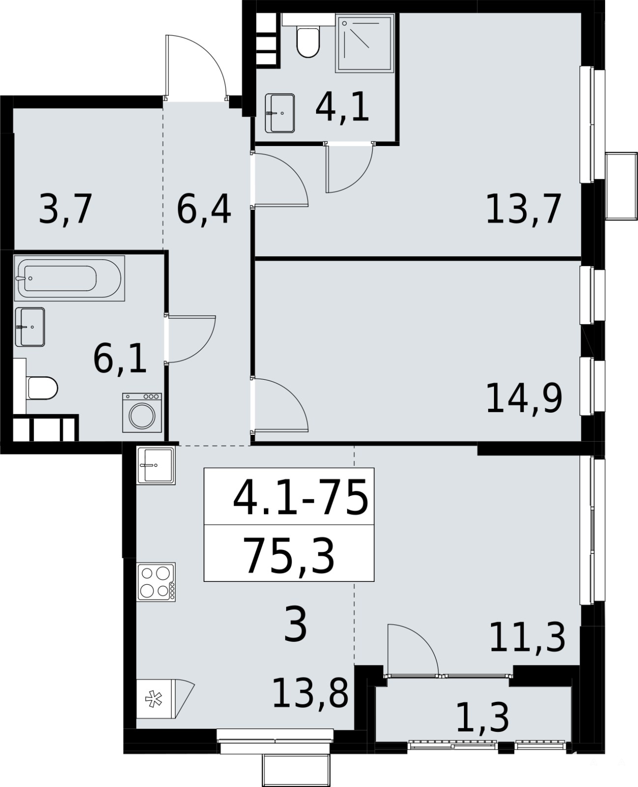 3-комн. квартира с европланировкой и отделкой в ЖК "Южные сады" на 14 этаже. Общая площадь: 75.3 кв.м., жилая: 39.9 кв.м., общая площадь гостиной-столовой с кухонной зоной: 25.1 кв.м. Европейская планировка, зона гостиной комнаты объединена с кухней. Квартира угловая, идеально подойдет любителям тишины и панорамных видов. В квартире одна лоджия, два совмещенных санузла. Высота потолков 2.95 м.
