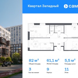 Строим кварталы для жизни с заботой о будущем. Предлагается 3-комнатная квартира комфорт-класса 81, 98 кв.м в корпусе 9 на 11 этаже, в ЖК «Квартал Западный» Квартира с чистовой отделкой. Доступность дополнительных опций уточняйте у застройщика. Приобрести квартиру возможно по...