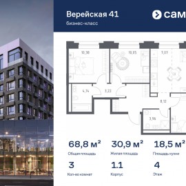 Продается 3-комнатная квартира от застройщика: общая площадь 90.30 м, жилая 37.80 м, кухня 31.60 м, 18-й этаж, жилой квартал «Вдохновение», корпус 34 (секция 1) . Срок сдачи: 4 квартал 2027 года. Позвоните сейчас и забронируйте квартиру! Квартал бизнес-класса СИМВОЛ - это городское...