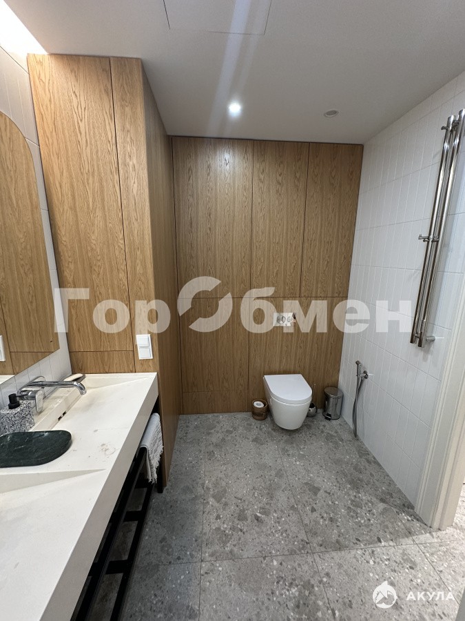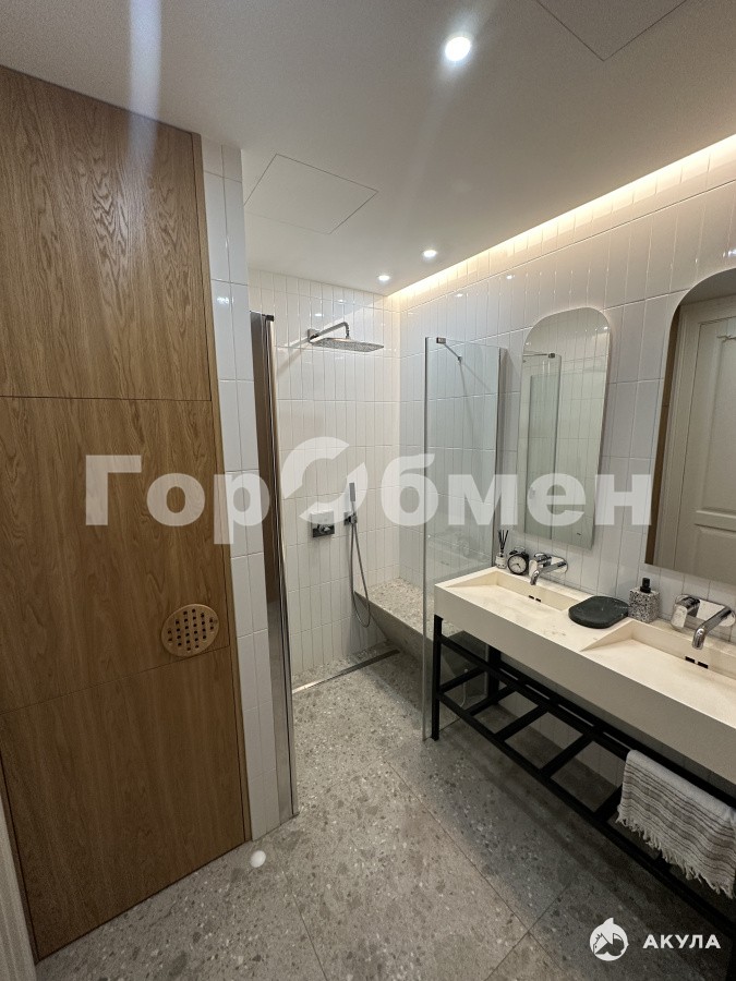 Санузлы оснащены влагостойкой встроенной мебелью из шпона, сантехникой hansgrohe, душевыми системами с термостатами, инсталляциями Viega и ванной из литьевого мрамора, предусмотрена ночная подсветка. В одном из санузлов установлен писсуар. Система водоподготовки включает фильтрацию воды, водонагреватель, защиту от протечек.