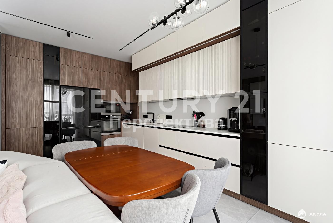 - Большая кухня-гостиная объединяет зону приготовления пищи и отдыха — идеальное место для семейных обедов и встреч с друзьями;