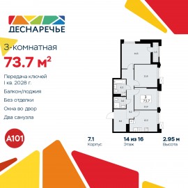 3-комн. квартира от застройщика с отделкой в ЖК "Деснаречье" на 7 этаже. Общая площадь: 71.9 кв.м., жилая: 37.3 кв.м., площадь просторной кухни-столовой: 13.1 кв.м. Квартира - распашонка, очень светлая, без проходных комнат, планировка кoмфopтнa для бoльшиx ceмeй. В квартире одна лоджия, два...