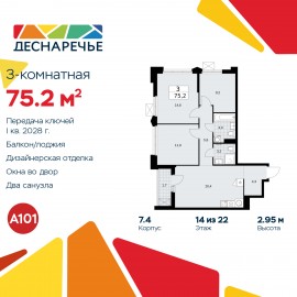 Просторная трехкомнатная квартира с отделкой в ЖК "Деснаречье" на 14 этаже. Общая площадь: 75.2 кв.м., жилая: 35.7 кв.м., площадь просторной кухни-столовой: 20.4 кв.м. Угловая квартира, идеально подойдет любителям тишины и панорамных видов. В квартире одна лоджия, два совмещенных...