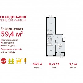 Продается трехкомнатная квартира бизнес-класса с европланировкой в ЖК "Скандинавия" на 8 этаже. Квартира без отделки, после получения ключей можно делать ремонт. Общая площадь: 59.4 кв.м., жилая: 36.5 кв.м., общая площадь гостиной-столовой с кухонной зоной: 18.2 кв.м. Европейская...