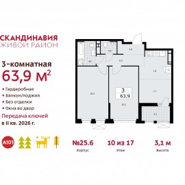 Просторная 3-комн. квартира бизнес-класса с европланировкой в ЖК "Скандинавия" на 10 этаже. Квартира без отделки, после выдачи ключей можно делать ремонт. Общая площадь: 63.9 кв.м., жилая: 39.2 кв.м., общая площадь гостиной-столовой с кухонной зоной: 15.6 кв.м. Европейская планировка,...