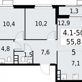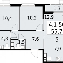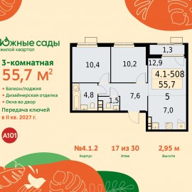 3-комн. квартира с европланировкой и отделкой в ЖК "Южные сады" на 17 этаже. Общая площадь: 55.7 кв.м., жилая: 33.3 кв.м., общая площадь гостиной-столовой с кухонной зоной: 19.9 кв.м. Европейская планировка, кухня-гостиная - идеальный вариант для тех, кто любит часто принимать гостей....