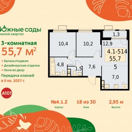 Продается 3-комн. квартира с европланировкой и отделкой в ЖК "Южные сады" на 18 этаже. Общая площадь: 55.7 кв.м., жилая: 33.3 кв.м., суммарная площадь гостиной-столовой с кухонной зоной: 19.9 кв.м. Европейская планировка, кухня и гостиная объединены в одно просторное помещение. Комнаты...