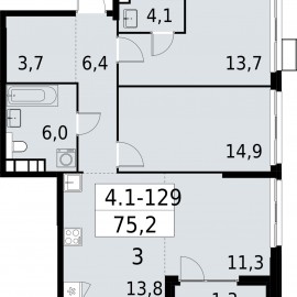 Трехкомнатная квартира с европланировкой и отделкой в ЖК "Южные сады" на 18 этаже. Общая площадь: 75.2 кв.м., жилая: 39.9 кв.м., суммарная площадь гостиной-столовой с кухонной зоной: 25.1 кв.м. Европланировка, площадь комнат позволяет разместить в них все необходимое, а в просторной...